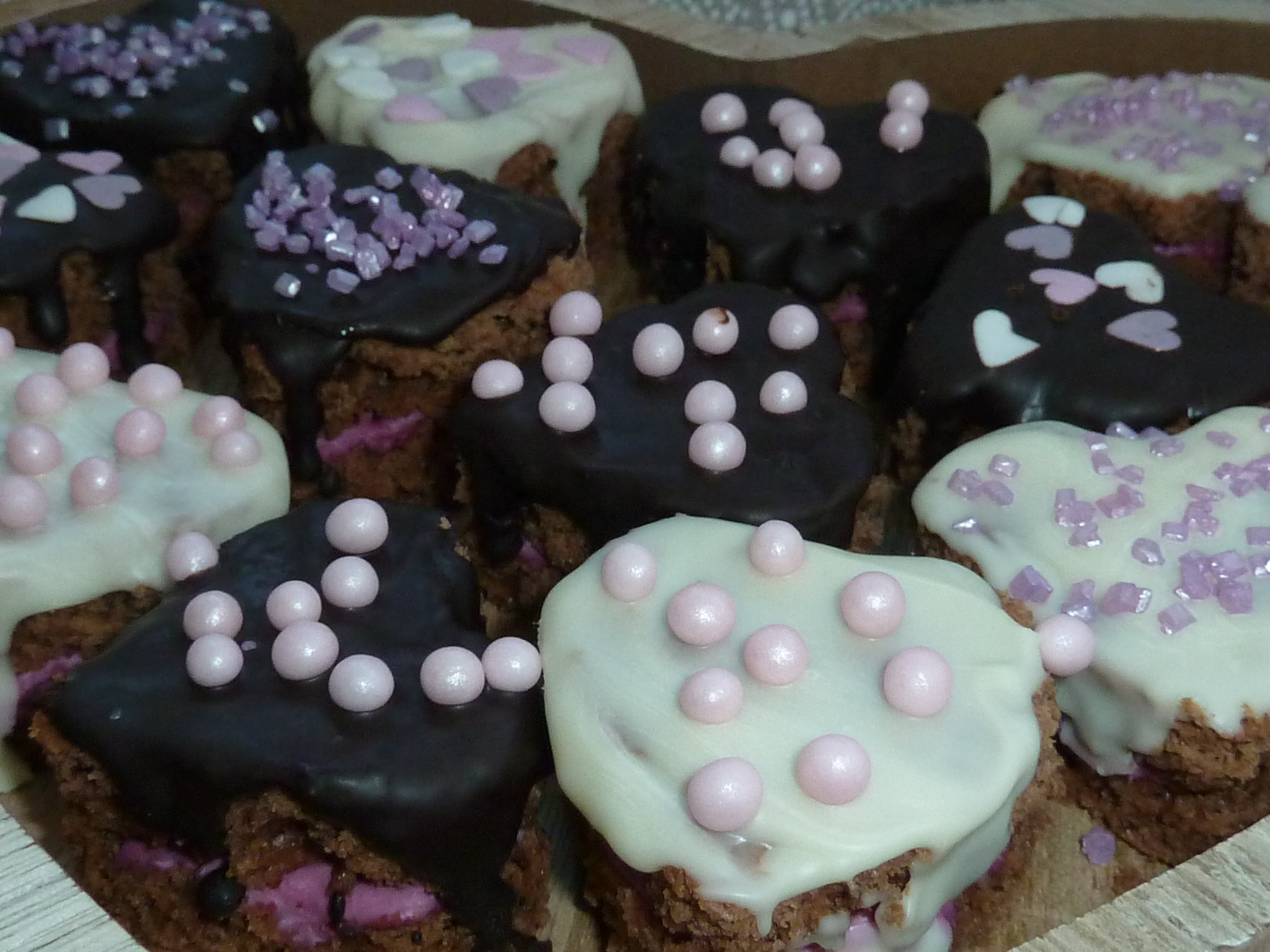 Ja, ich bin ein kleiner Schokoholic! Und während andere 40 Tage auf Süßes verzichte back‘ ich mir weiterhin meine süßen Speisen 🙂 Besonders gerne habe ich die Kombination aus Schokolade und Fruchtcreme. Hier ist das Rezept meiner „Schoko-Brombeere-Herzen“. Wunderschön zum Verschenken, oder aber selber Essen:
