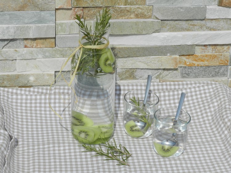 Rosmarin hat einen sehr intensiven, aromatischen Geruch und ist im Geschmack leicht bitter. Erinnert an Kampfer und ein wenig auch an Eukalyptus. Macht sich also wunderbar im Wasser. Die Kiwis sorgen für die Frische im Wasser… eine herrliche Kombi wie ich finde!