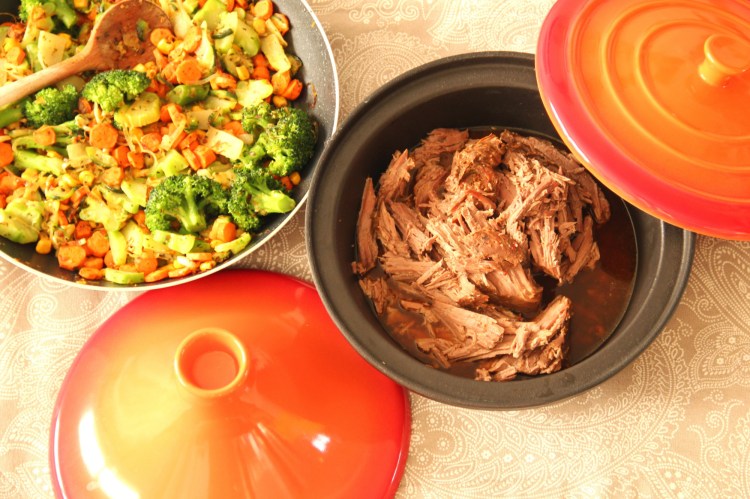 Spät aber doch habe ich nun endlich auch das letzte meiner Weihnachtsgeschenke ausprobiert… die Tajine! Ich glaube kochen war noch nie so einfach. Ich habe mich dieses mal für ein Pulled Beef (ja es gibt nicht nur Pulled Pork) entschieden. Dank dem super Angebot in der Metzgerei meines Vertrauens musste ich das fertig marinierte Stückchen Fleisch nur in die Tajine geben und 30 Minuten bei 180° C braten lassen. Danach das Fleisch mit der Gabel auseinander teilen und servieren! Noch einfach geht’s glaub ich gar nicht mehr.