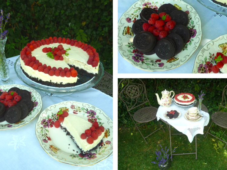 Es ist Zeit für Cookies – besser gesagt für Oreo-Cookies! Packung aufreißen und essen kann jeder – deshalb wandern sie bei mir gleich in diesen wunderbaren No-bake Cheesecake. Aufgepeppt mit Himbeeren und einer Schlagobers-Mascarponecreme ein herrliches Dessert bei diesen heißen Temperaturen, findet ihr nicht auch? Ein weiterer wesentlicher Grund der für dieses Rezept spricht: wer will den schon bei über 30 Grad am heißen Backofen stehen? Eben! Und beim vorliegenden Rezept darfst du nicht nur den Kühlschrank ganz oft öffnen – nein du solltest den Kuchen sogar ständig kühl stellen! So bekommst du selbst bestimmt auch die ein oder andere Portion kalte Luft ab!