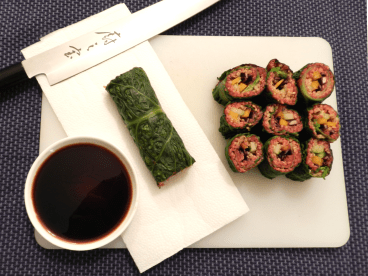 Da das Auge ja bekanntlich mit isst findet die rote Knolle in meiner Küche regelmäßig Einzug. Zu meinen Lieblingsgerichten gehört auf jeden Fall der Rote Rüben oder Rote Beete Hummus der sich nicht nur hervorragend auf Brot und zum Dippen eignet sondern auch als Basis für meine Quinoa-Sushi gedient hat!