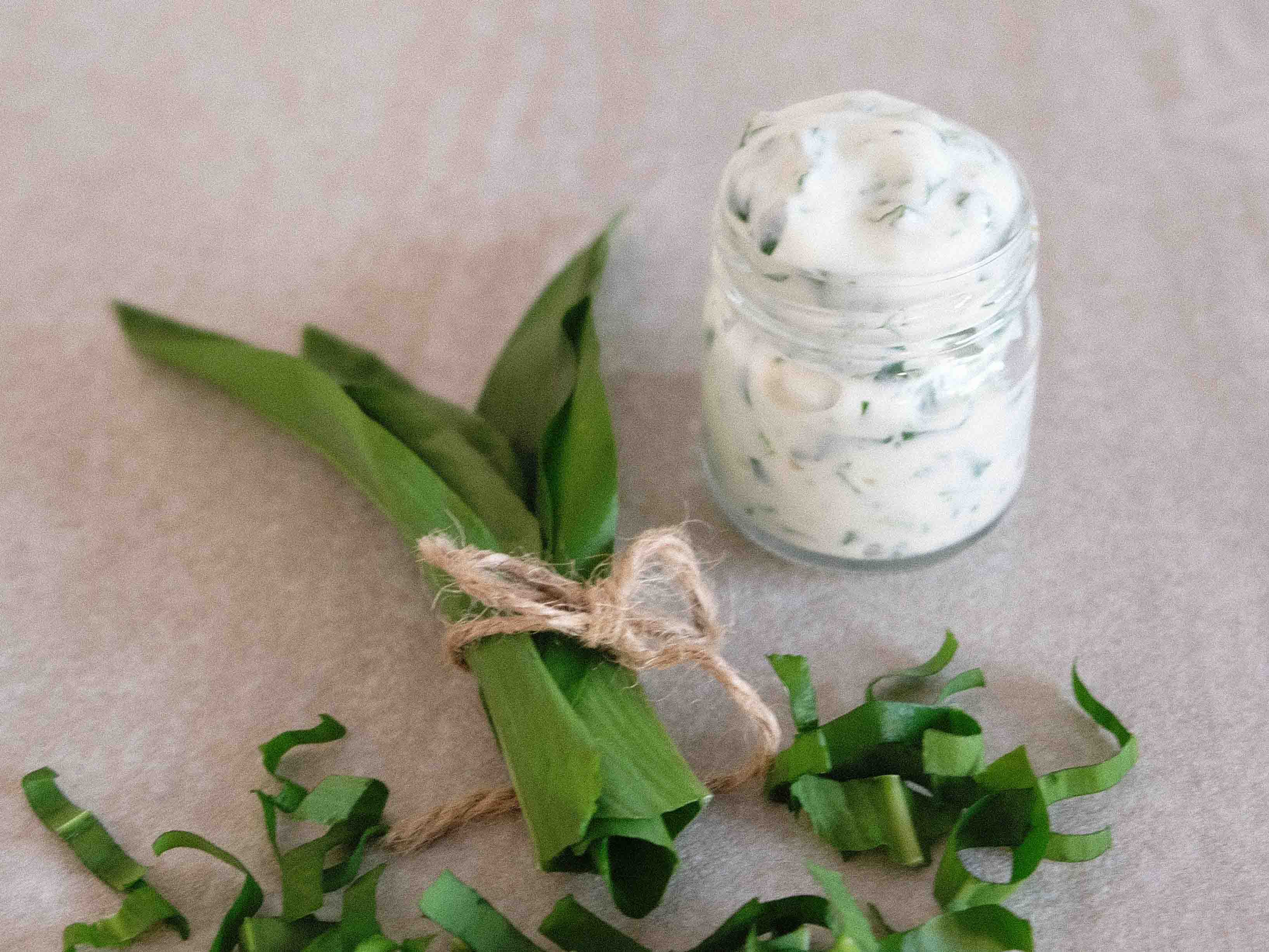 - Griechisches Joghurt und Bärlauchblätter vermengen.