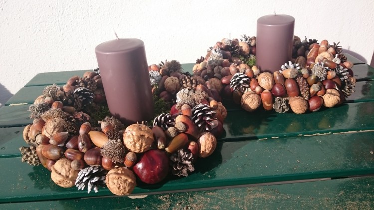 Was wäre der Herbst ohne Waldspaziergänge? Ich liebe diese Stunden in der Natur ganz besonders. Bei unserem letzten Wochenendspaziergang haben wir vieles gesammelt das der Wald an Natur-Bastelmaterial so hergibt: Nüsse in allen Variationen, Eicheln, Kastanien, Tannenzapfen… Materialien: Nüsse, Kastanien, Eicheln, Zapfen, Stroh/Heukranz, Heißklebepistole, eventuell Goldspray, Moos, Pappteller, Kerze Bastelanleitung: Je nach Belieben einige Eicheln […]