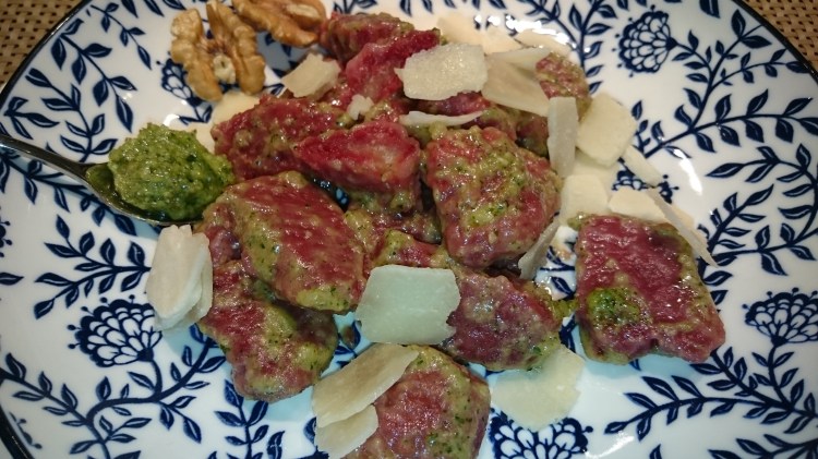 Rote Rüben Gnocchi mit Walnuss-Petersilien Pesto